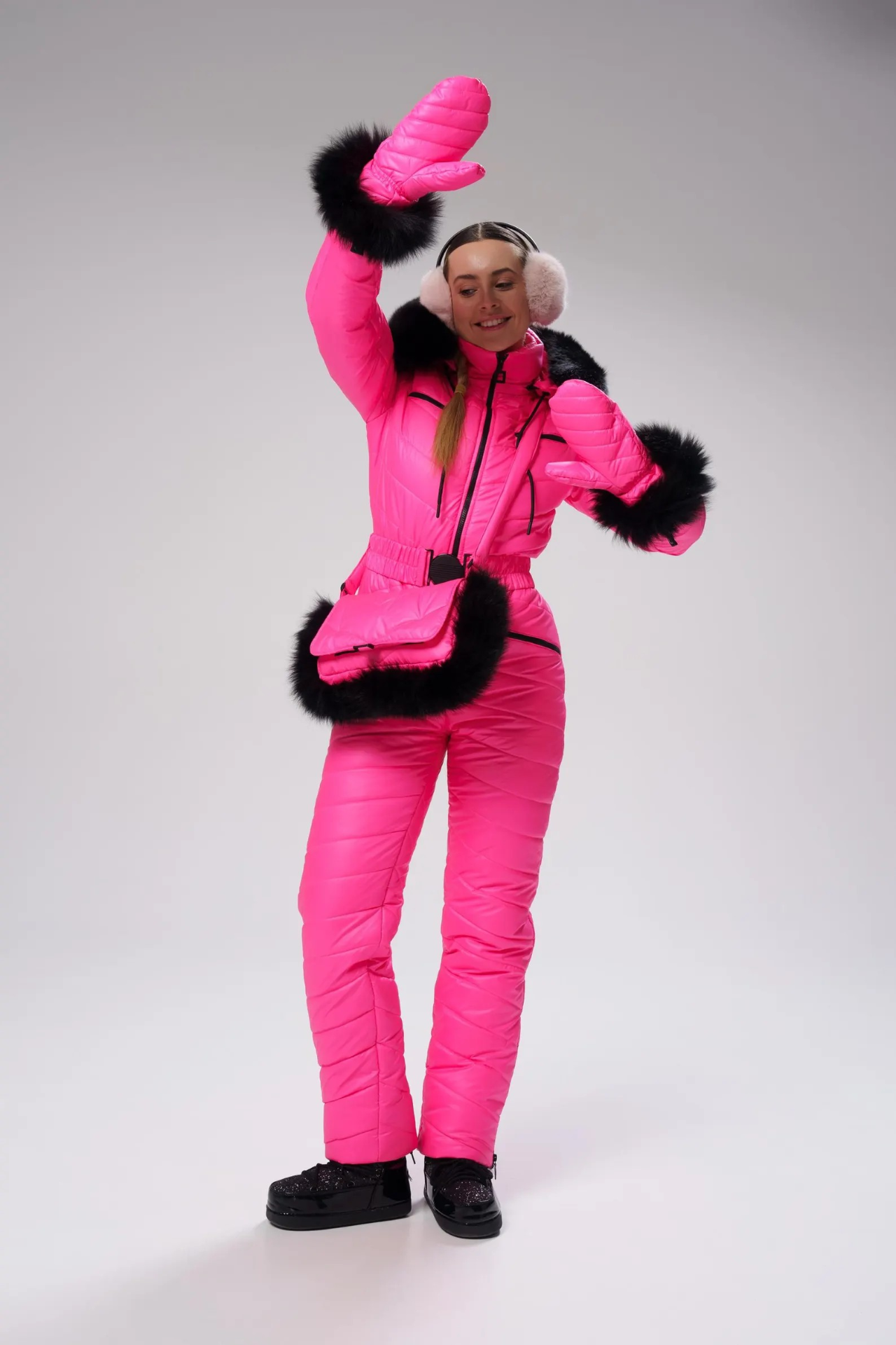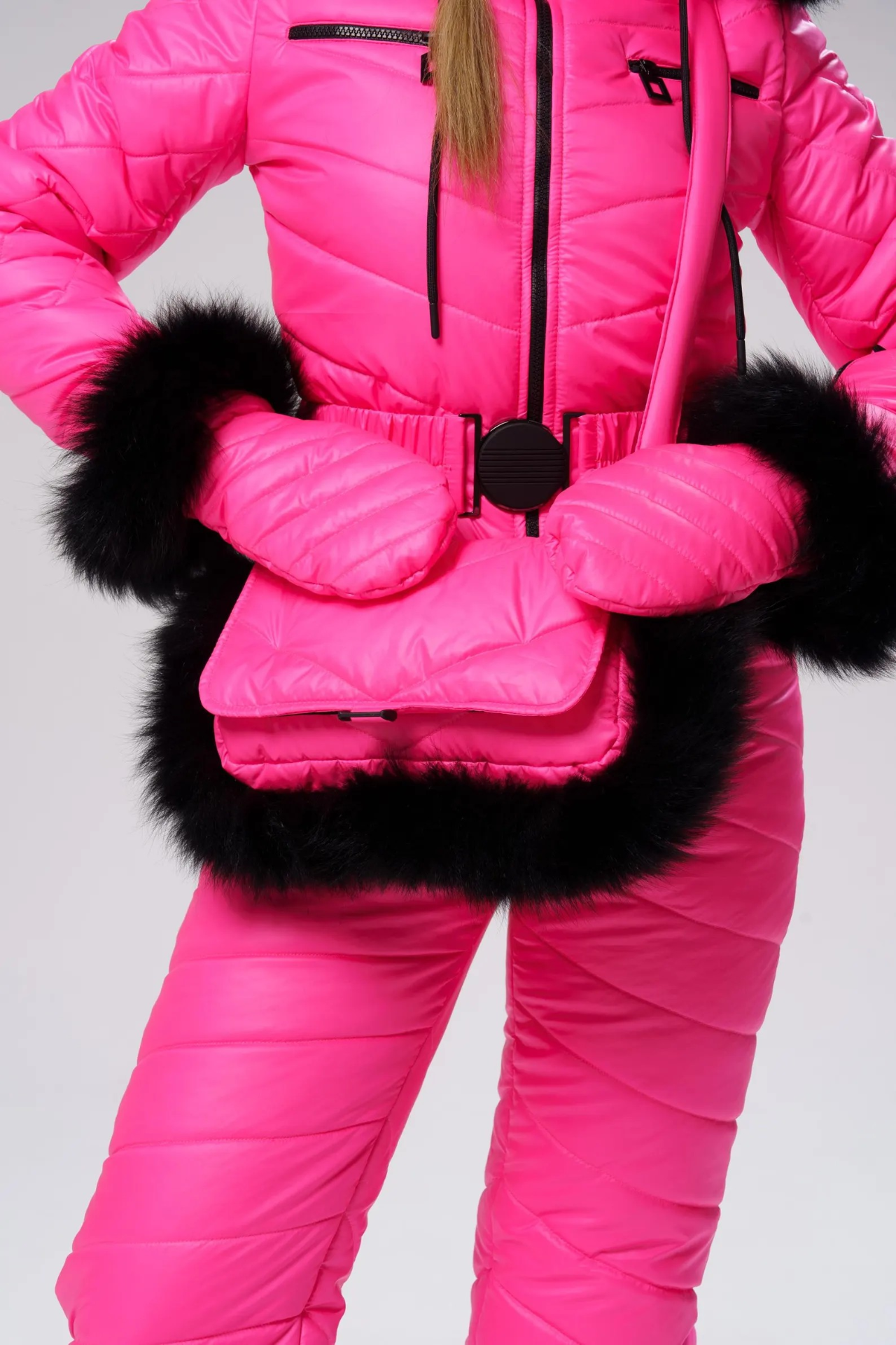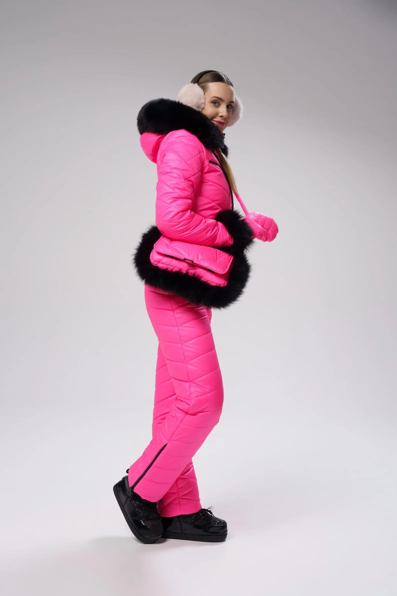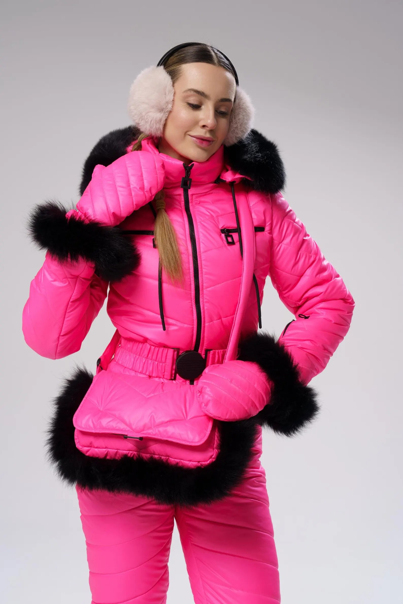 Dámská zimní kombinéza s taškou a palčáky,