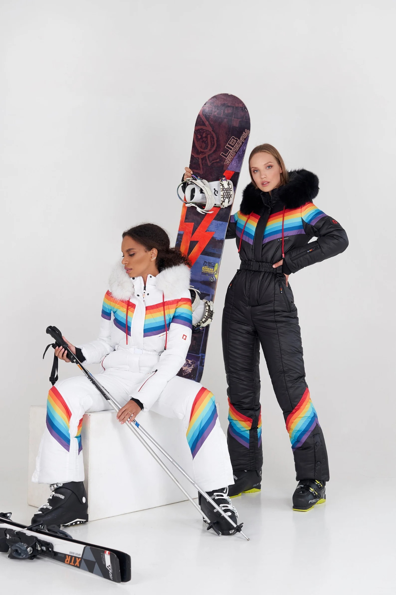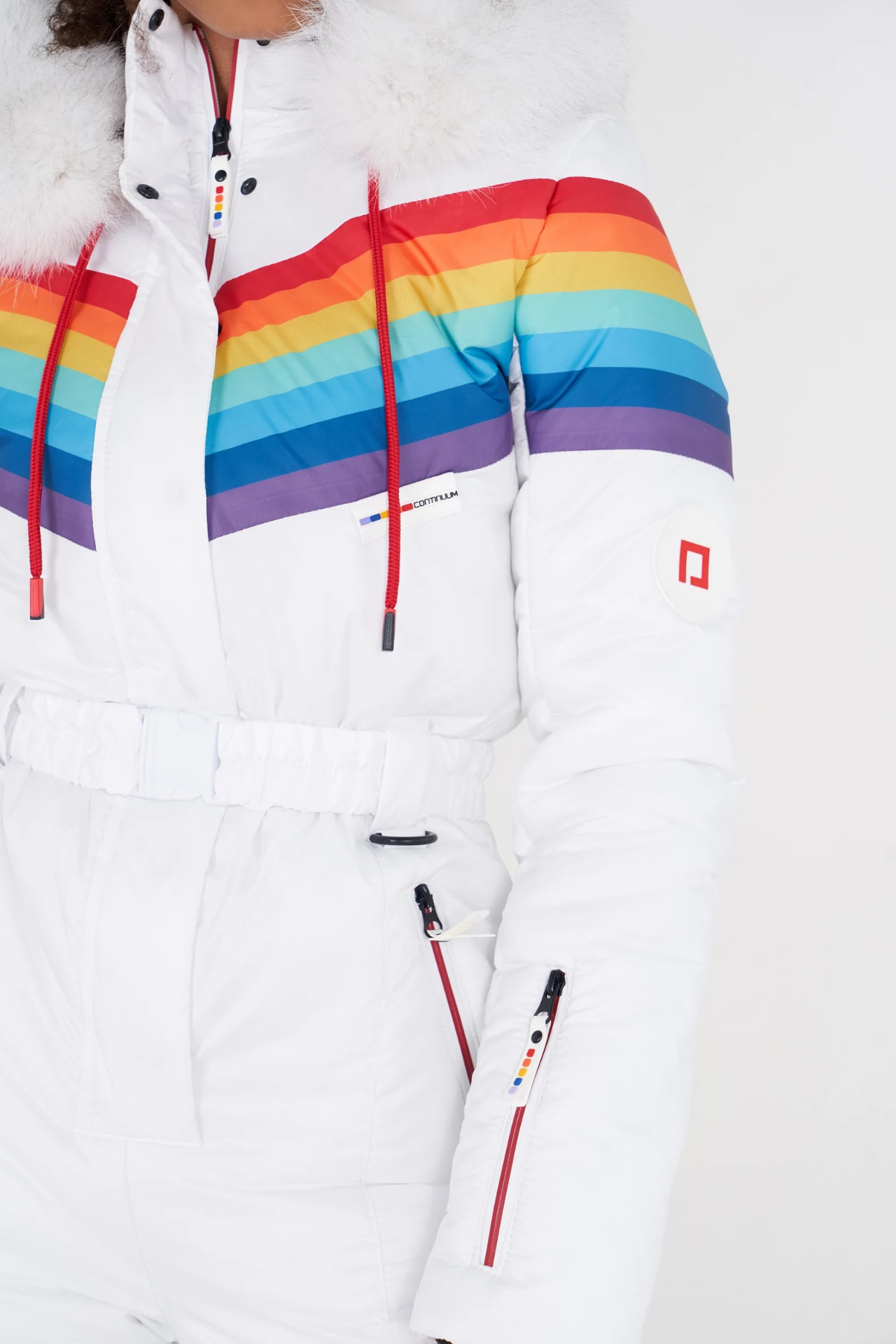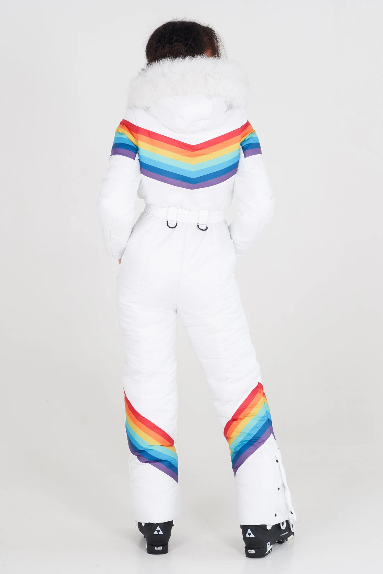 Tato dámská kombinéza zdobená jasnou duhou je ideální pro chladné zimní dny.