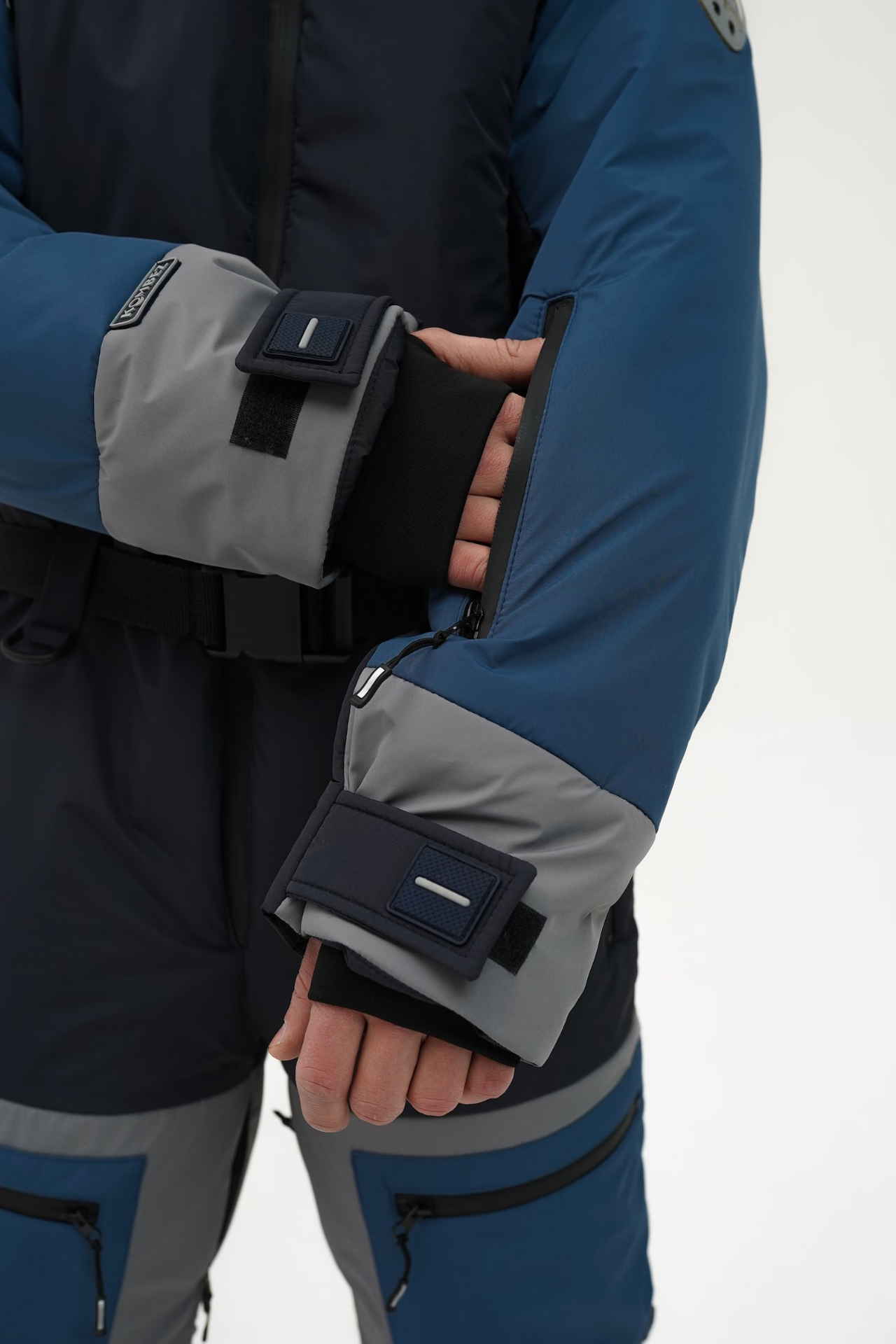 Nepromokavá lyžařská kombinéza membrana pro muže je vyrobena ze speciální tkaniny a moderní silikonizované výplně. Toto zimní svrchní oblečení udrží teplo na -4 °F (-20 °C).